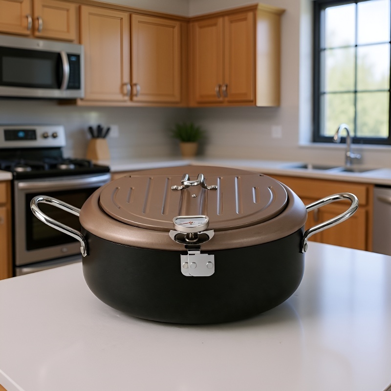 Japanese deep fryer iron temperature control with thermometer save tempura deep fryer flip cover